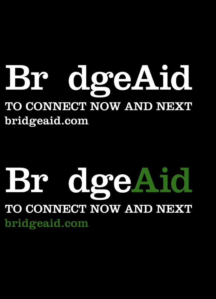 The final brand concept (‘Br dge Aid’) was both intuitive and engaging: it’s a call to action. Built around the concept of a ‘gap’, it invites the audience in; encouraging engagement with the problem (what’s missing?) and the solution (what can they do?).